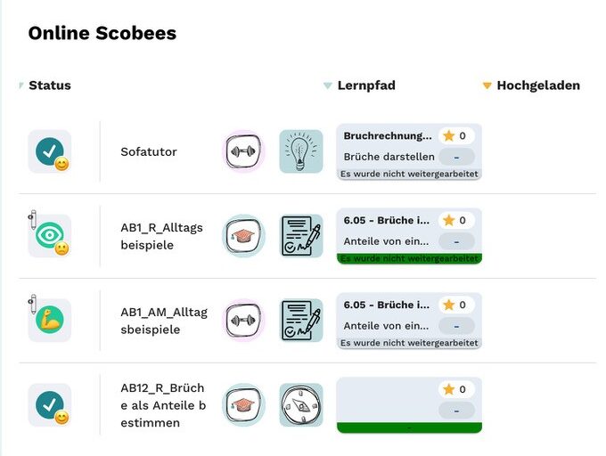 Schüler:innen sehen ihren Lernweg und dokumentieren Ergebnisse direkt im System. Sie sehen auf Ihrem Dashboard sofort: Wer fliegt? Wer steckt fest?