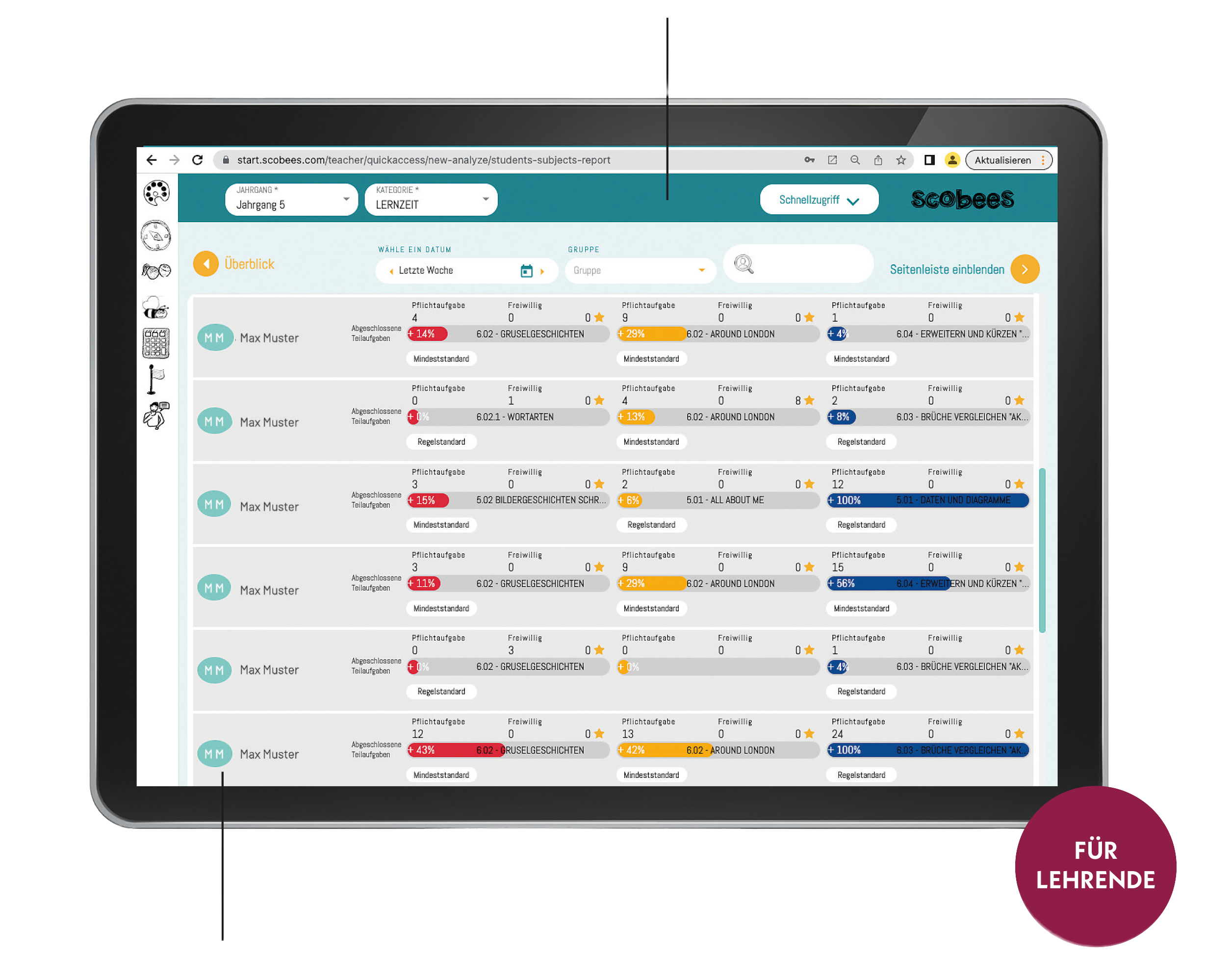 Schluss mit der Korrekturlast. Sie behalten 30 individuelle Lernstände im Blick und gewinnen Zeit für echte pädagogische Begleitung.